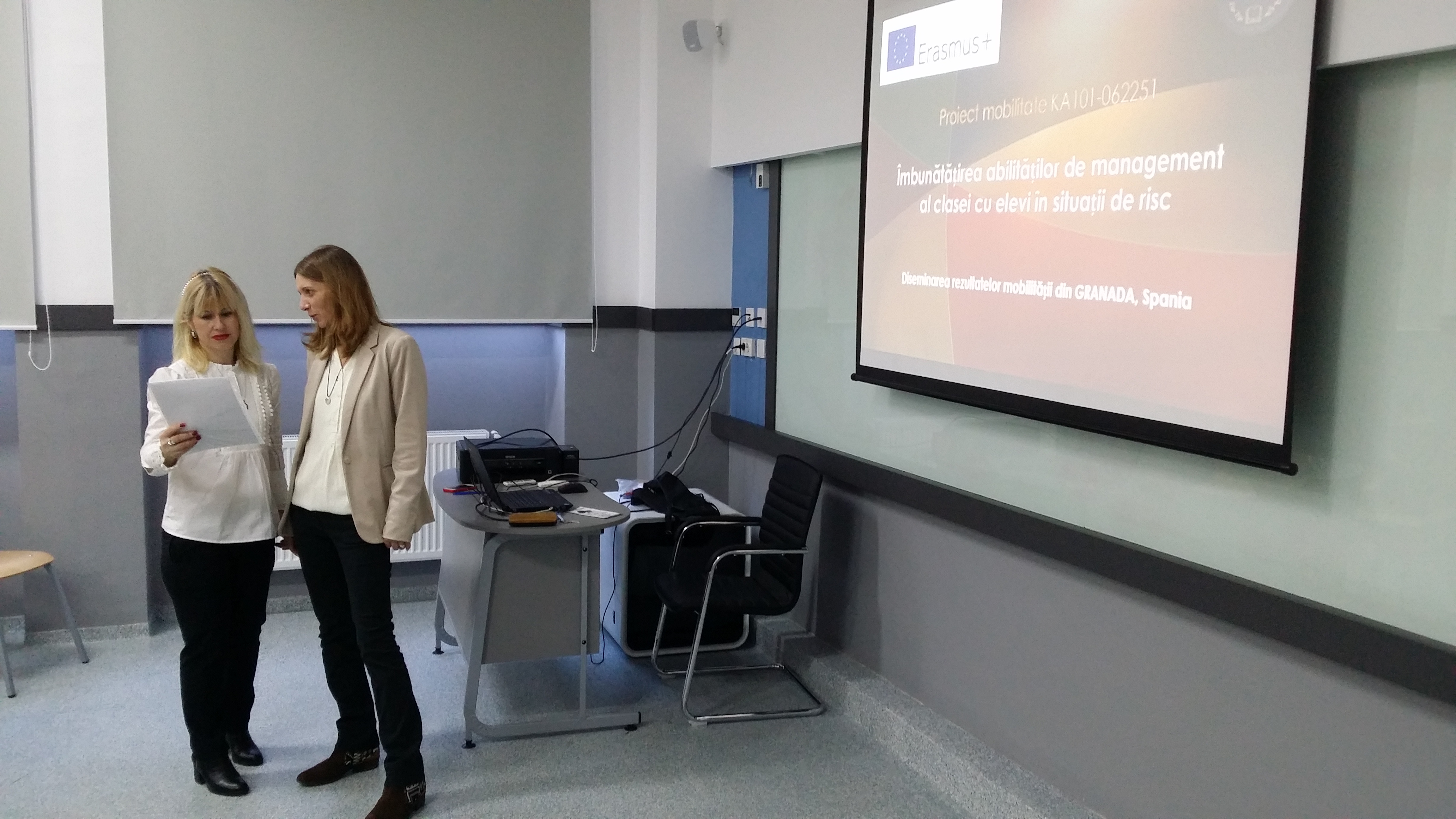 04.11.2019 - 30.11.2019Diseminarea mobilitatii a inceput cu elaborarea unei pagini in cadrul site-ului scolii. Aceasta pagina impreuna cu cea de fata si imaginile din galeria de imagini ale scolii, fac obiectul actiunii de diseminare a tuturor activitatilor post mobilitate, in cadrul actiunii cheie 1 "Managementul clasei cu elevi in situatii de risc" din cadrul proiectului Erasmus+. -